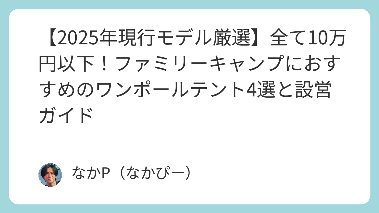 お待たせしました!ここからは、なかぴーが「これなら間違いない」と太鼓判を押す、10万円以下の優秀なワンポールテントを4つ紹介します。