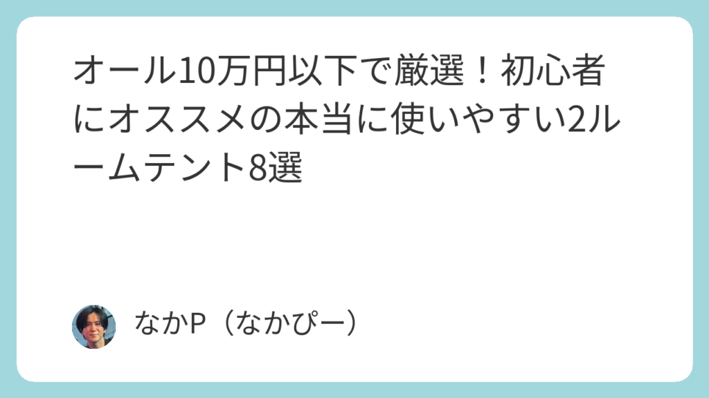 - 2. 【なかぴー厳選】10万円以下の高コスパ2ルームテント8選徹底比較